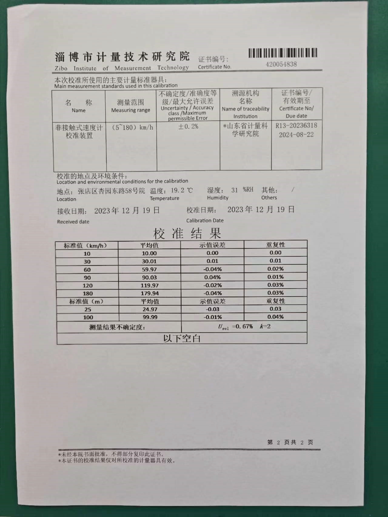 示值誤差:a)減速度測量值為(0~4.90)m/s2時,示值誤差為:±0.10 m/s2;b)減速度測量值為其他值時,示值誤差為:±1.0 % (國標是2%)。